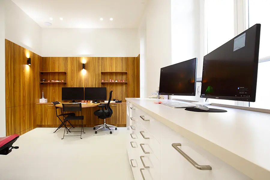 Achievements Orthodontic practice Grenoble (38) Renovation of a 260m² orthodontic practice comprising six treatment rooms Architect: Crea Design Photo credit: Walter Babic Achievements